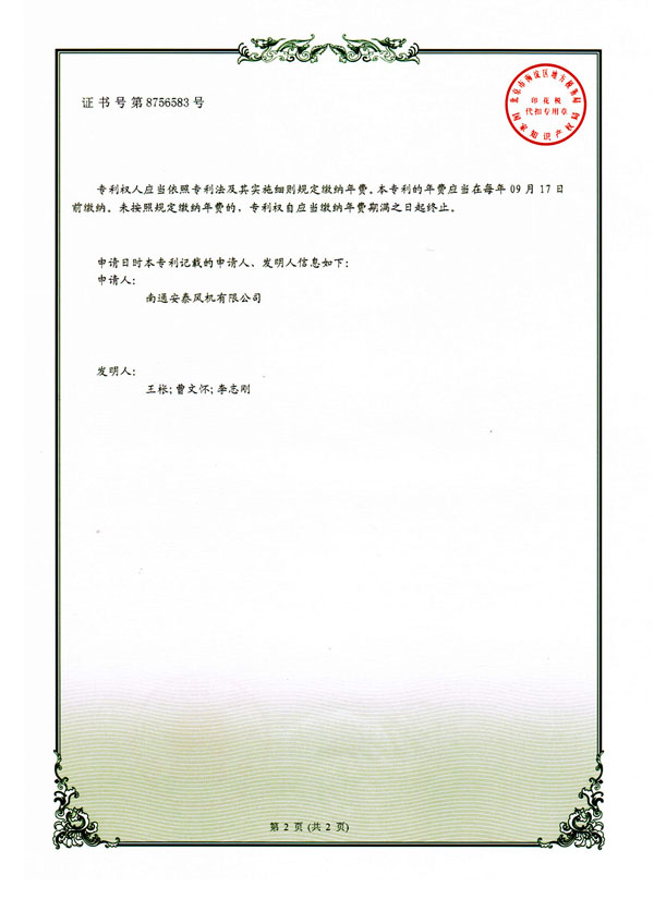 安泰風(fēng)機(jī) >> 資質(zhì)證書 >> 一種風(fēng)機(jī)消聲器