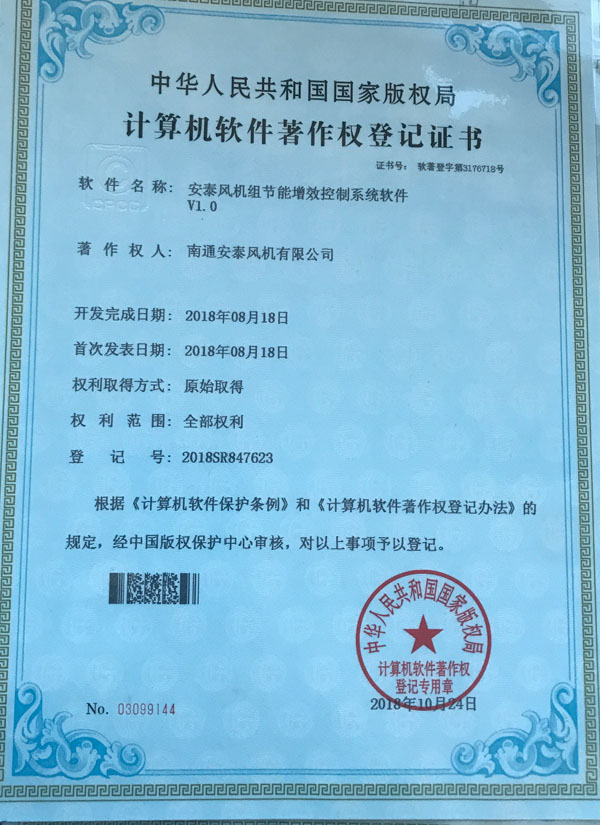 安泰風(fēng)機(jī) >> 資質(zhì)證書(shū) >> 風(fēng)機(jī)組節(jié)能增效控制系統(tǒng)軟件